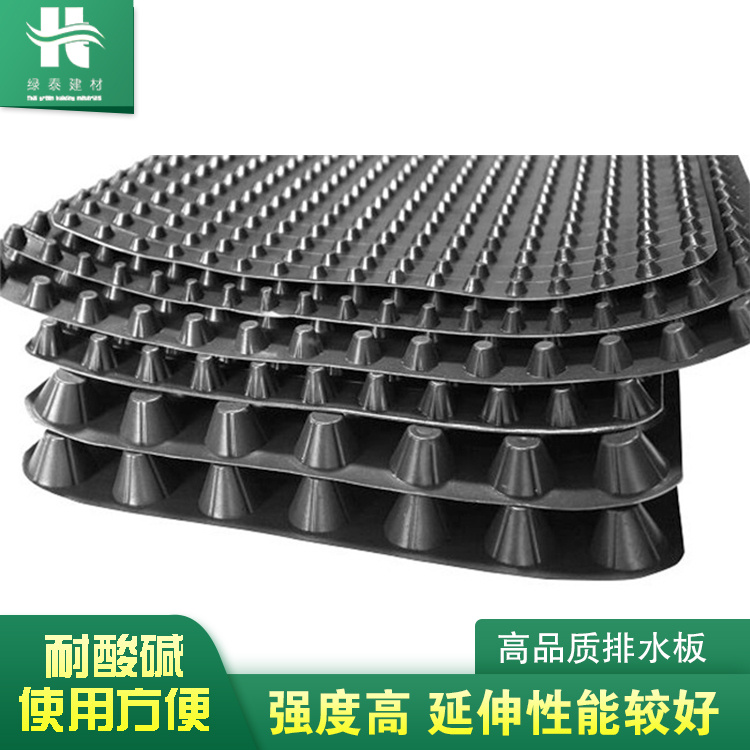 排水板采用高密度聚乙烯(HDPE)為主要原料,經(jīng)高科技生產(chǎn)線制造而成的柔韌性防水卷材,產(chǎn)品具有抗壓強度高,柔韌性好,抗拉強度高,耐腐蝕、耐老化、耐植物穿刺,不會分解、防水環(huán)保等特性,易于按裝,使用年限可達100年以上.