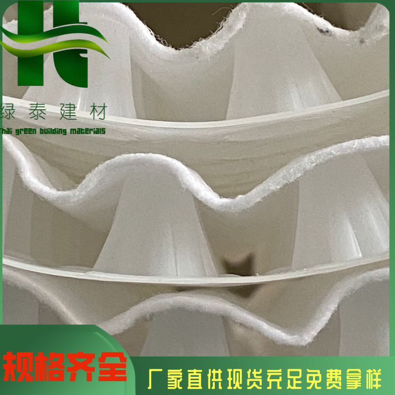 復(fù)合排水板(又名三維復(fù)合排水網(wǎng)、排水網(wǎng)格)是一種新型的排水土工材料。以高密度聚乙烯(HDPE)為原料,經(jīng)特殊的擠出成型工藝加工而成。具有三層特殊結(jié)構(gòu)。中間筋條剛性大,縱向排列,形成排水通道,上下交叉排列的筋條形成支撐防止土工布嵌入排水通道,即使在很高的荷載下也能保持很高的排水性能。雙面粘接滲水土工布復(fù)合使用,具有“反濾--排水--透氣--保護(hù)”綜合性能,是目前理想的排水材料。1、復(fù)合排水板是由一層或兩層無紡?fù)凉げ寂c一層不同結(jié)構(gòu)的三維合成土工網(wǎng)芯組成,具有排水隔離功能的復(fù)合結(jié)構(gòu)體;2、復(fù)合排水板應(yīng)用于地下車庫頂板種植、屋頂種植、地下側(cè)墻保護(hù)、排水,底板排水,隧道防水、排水,公路護(hù)坡,鹽堿地、沙漠種植、人工湖;3、復(fù)合排水板的應(yīng)用功能可隨意彎曲施工,快速排水防水層的靜水、HDPE土工膜積水,及時(shí)減輕主體結(jié)構(gòu)荷載,保護(hù)防水層和結(jié)構(gòu),避免遭受土壤回填,植物根刺、酸堿、地下昆蟲和微生物等對(duì)防水層的破壞。結(jié)合防水層使用,起到雙重防水防滲,使防水層隔絕氣體、防止氧化,大大提高防水系統(tǒng)的壽命。柔韌性材料,抗壓、抗拉強(qiáng)度高,滿足開裂縫所需的延伸率及行車道路的設(shè)施。經(jīng)久耐用的材料,滿足各種種植屋面使用,也可應(yīng)用老樓屋頂?shù)姆N植。施工簡便,也可應(yīng)用于老樓屋頂?shù)姆N植。