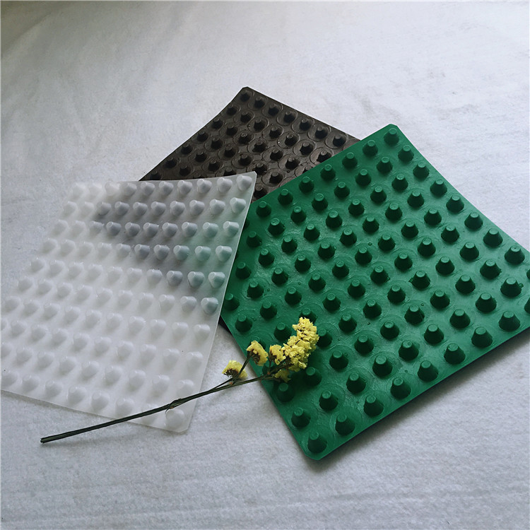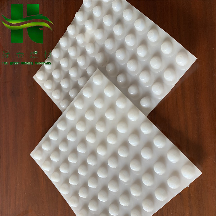 圓錐突臺(tái)的頂面膠接一層過(guò)濾土工布,以阻止泥土微粒通過(guò),從而避免排水通道阻塞使孔道排水順暢。 傳統(tǒng)的排水方式使用磚石瓦塊作為導(dǎo)濾層、使用較多的鵝卵石或碎石作為濾水層、將水排到指定地點(diǎn)。而用排水板取代鵝卵石濾水層來(lái)排水則省時(shí)、省力又節(jié)能、節(jié)省投資、還能降低建筑物的荷載。